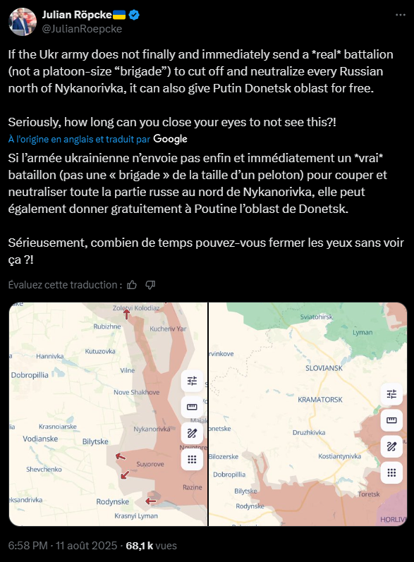 Si vous voulez une chaine neutre sur le conflit et les avancées uk / russe : le conflits en carte sur yb