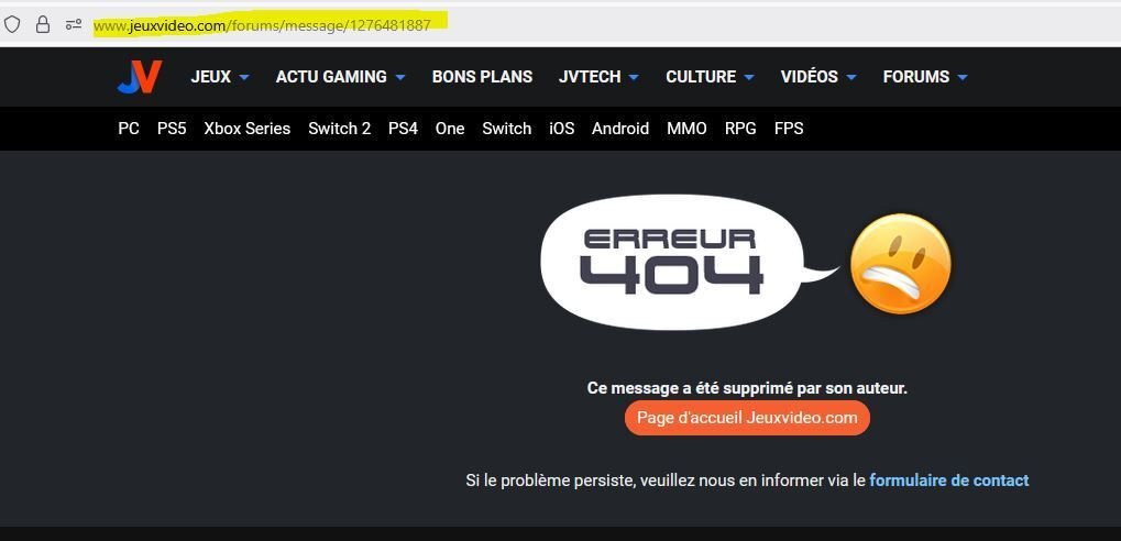 Toujours pas non. Comment un message "déjà modéré par un administrateur" a pu avoir la mention "effacé par son auteur" ?