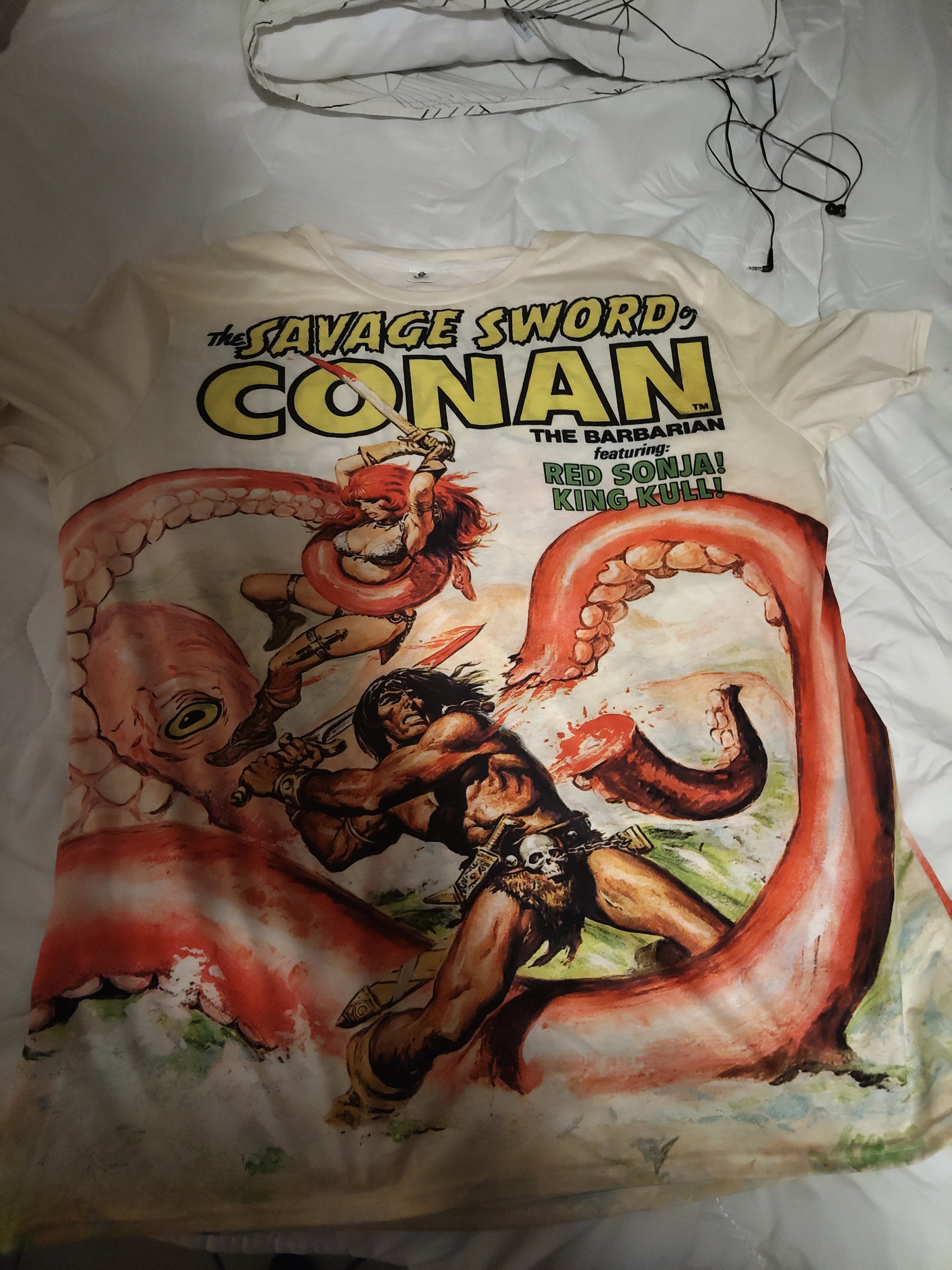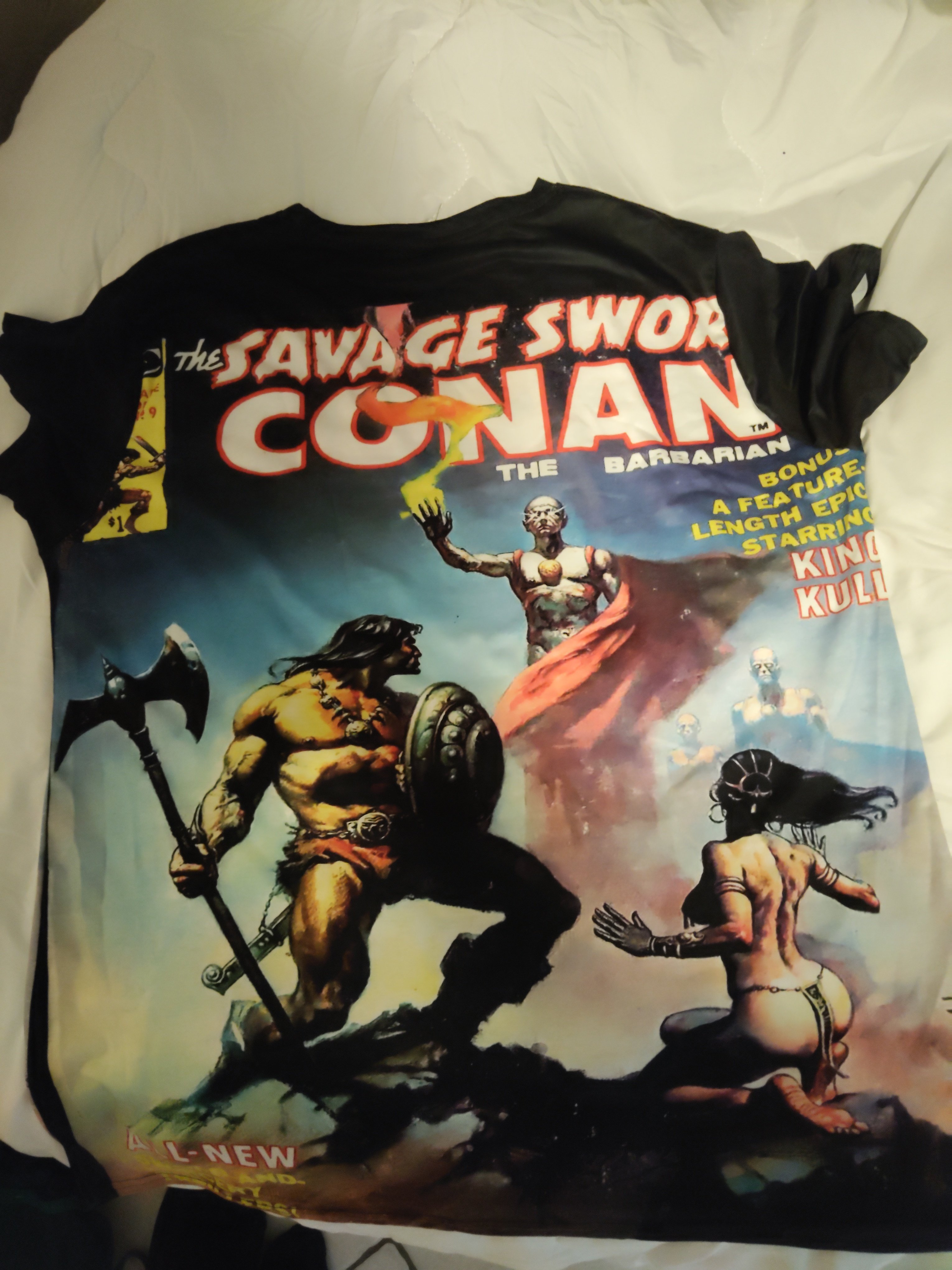 PAR crom les montagnes noir savoyarde se reverront . Le tee shirt et comme en photo, je vais pouvoir acheter mon Omnibus savage Sword vol 4 dans pas longtemps. Chez le pote ça sera plus simple. Et je' et marre par Mitra d'étouffer dans ce clapier.