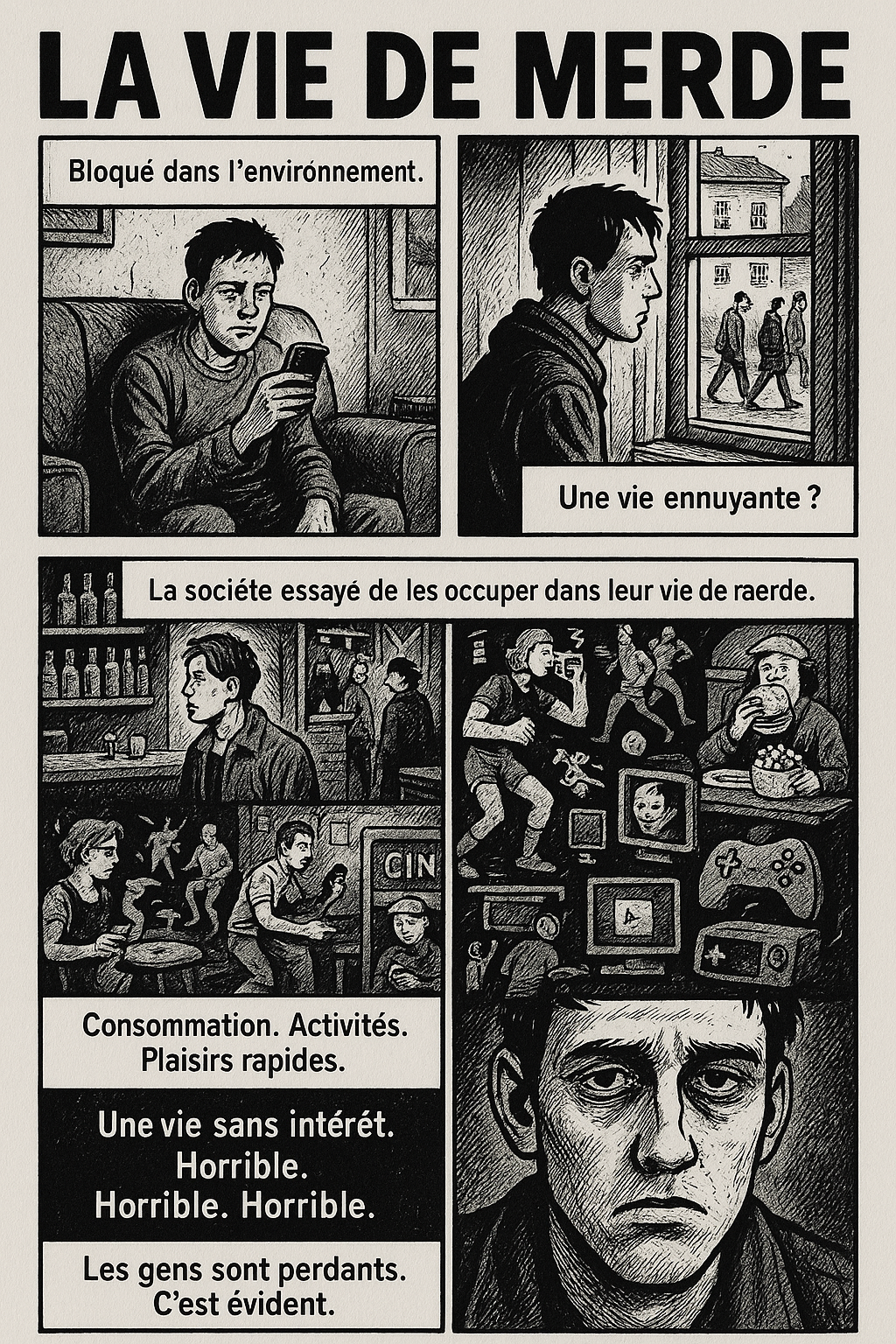 Au final tu te sens pas gagnant ? tu te tapes une vie de merde inintéressante et ennuyante + tu dois supporter le travail + supporter tous les problèmes de la vie ?