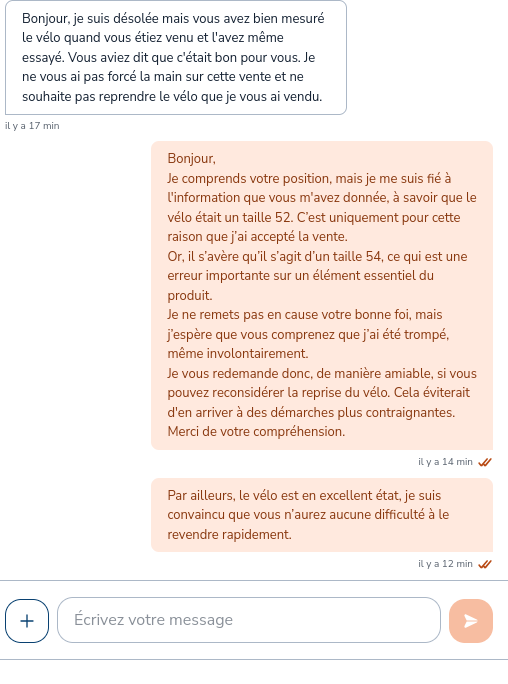 en gros je lui envois un message pour lui dire qu'elle a X jours pour accepter le retour sinon je fais autre chose, mais quoi..?