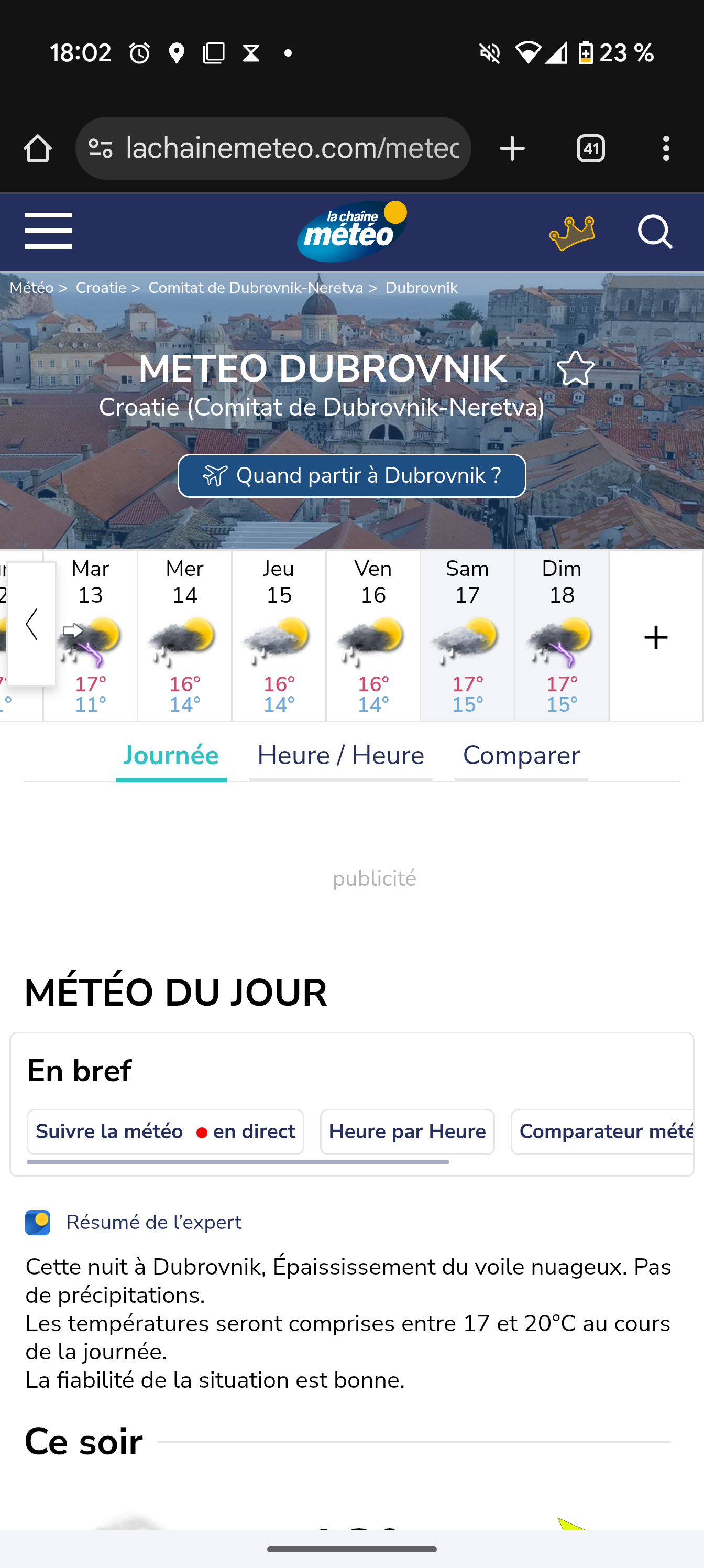 Je pars du 14 au 17 à dubvronik en Croatie