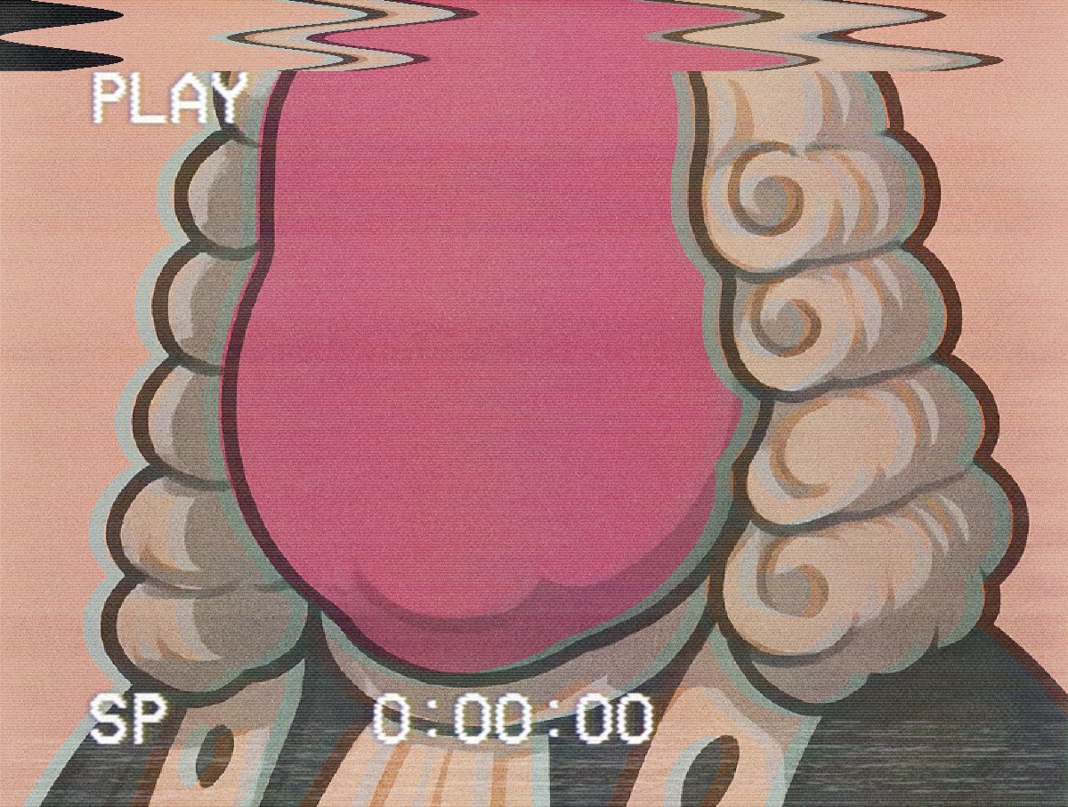 Une cassette s'insère automatiquement dans un lecteur hors de la vue d'Alastor, le poste prend vie, un juge Séris apparaît avec sa hermine et sa perruque, une verrue lui pousse sur sa joue visiblement bien nourrie.
