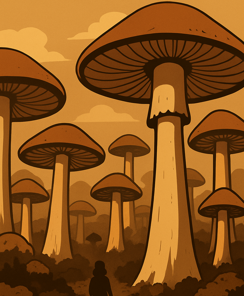 Devant Auroch, les champignons se déploient comme des parapluies, mais l'air est sec, les nuages restent désespérément gris et inertes, des témoins silencieux des épreuves à venir.