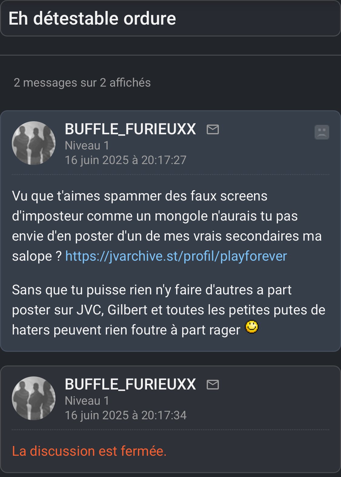 Il a prétendu qu’un jour en convention, où il était accompagné de "gardes du corps" (il en parle dans sa vidéo ouin ouin, où contrairement à tous les témoignages de gens sur place, il est le seul à avoir entendu des insultes, à avoir vu un troisième larron dans l’altercation, mais ne pas avoir su décrire le visage et la carrure de celui qui s’est défendu), sa fameuse escorte d’élite (composée de François, Fenysk, Spinal et Akka probablement