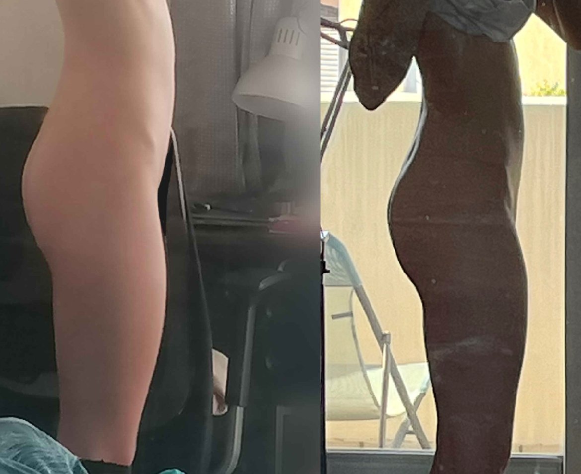Ou sinon cet avant après avec des photos plus ressemblantes mais le avant date du 30 mars donc j’avais déjà commencé les exercices :