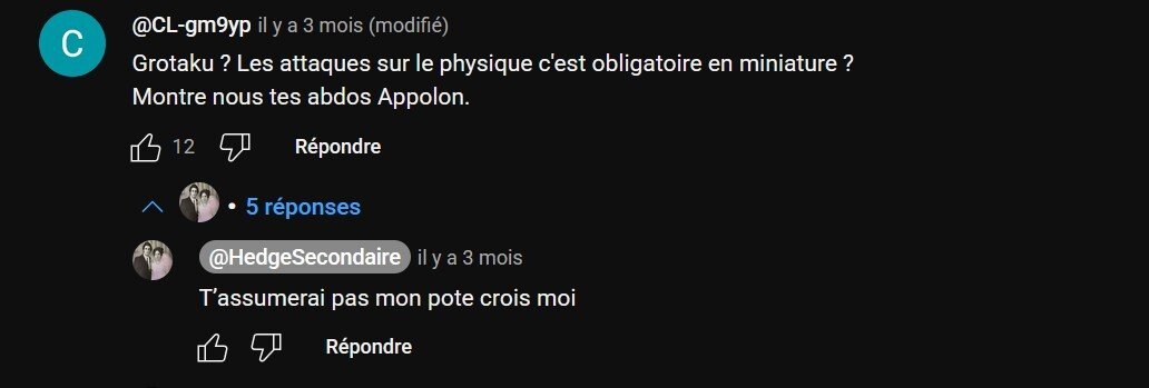 il a fait une vidéo réponse https://www.youtube.com/shorts/sxu3y63ANVM