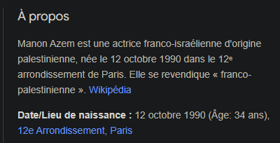 Je comprends pas si elle est palestinienne ou israelienne mais j'ouvre toutes les frontières pour elle et plus encore