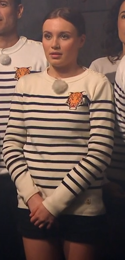 Je crois qu'elle s'était incrusté à un défilé de mode, mais honnêtement je sais plus si c'est ce sketch ou un autre