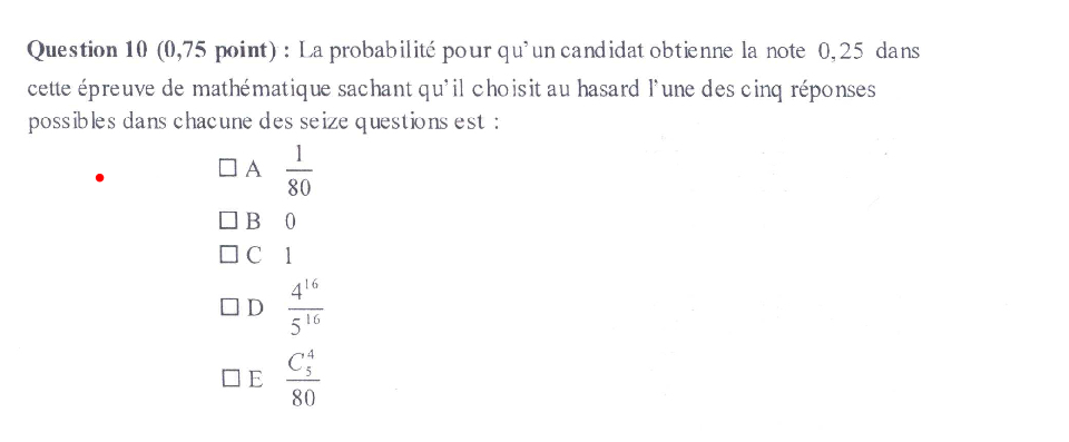 Peut être que j'ai mal compris mais les questions sont sur 0.75 donc pour avoir 0.25 faudrait avoir bon a entre 0 et 1 question strictement ce qui n'a aucun sens, c'est même pas une question de proba