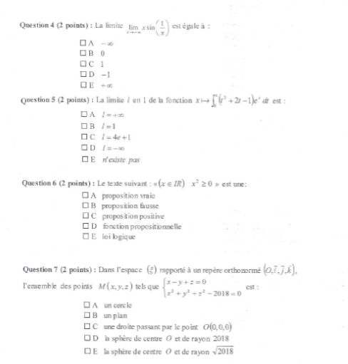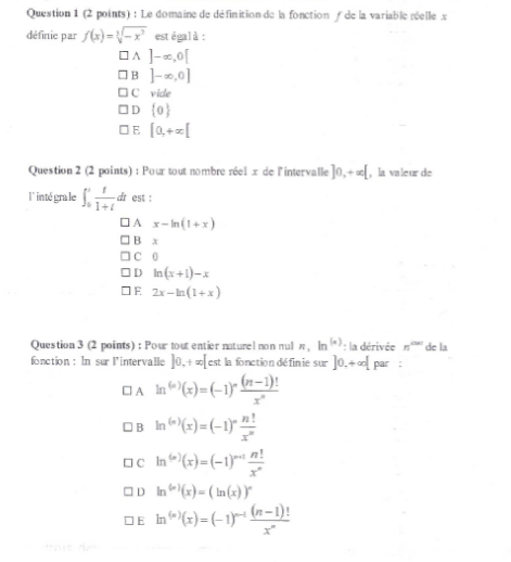 vous allez pas me faire croire que c'est simple comme exam je vois pas comment repondre de tete a une integrale y'a 2 3 questions facile de cours le reste est tout sauf simple nonobstant si t'as la reponse a la question 5 la limite je veux bien