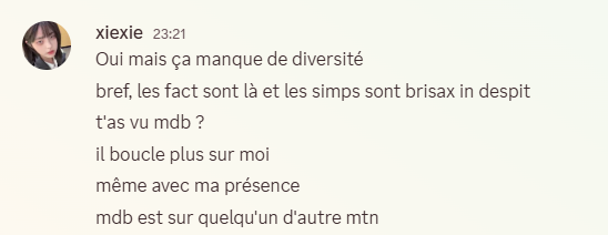 LA KHEYETTE Uwo aka Offbeat aka JustineAChier aka Xiexie sur discord je lui manque khey