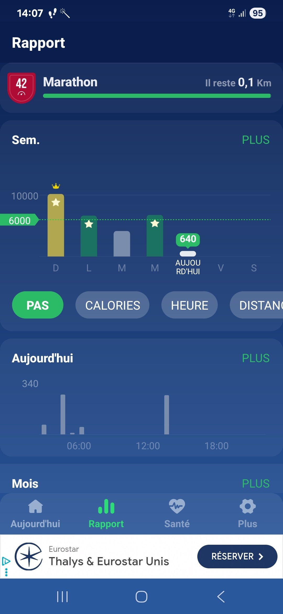 Je me suis mis un objectif de 6000 pas/jours en sachant que quand je travail je fais 10k sur la journée je trouve que 6K c'est une moyenne raisonnable pendant mes jours de repos