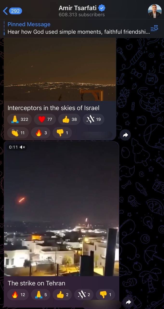 Meanwhile, Israeli bloggers share footage of True Promise-2 as 'strikes on Tehran'.