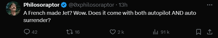 pour rappel, la france est le seul pays qui fabrique encore des avions de 4ème gen