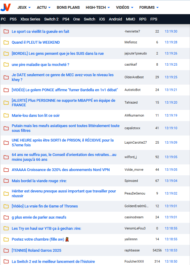 Y a même plus de topic drôle, j'passe de temps en temps sur le forum je regarde mon téléphone dans la journée et je vois toujours les mêmes topics, toujours les mêmes sujets de merde, Rima, immigration, extreme droite, LFI machin et honnêtement vous faites pitié
