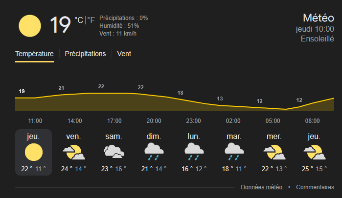 Sinon à ce compte là tu regardes la météo du Markstein (sommet dans le Haut Rhin) où il fait pas plus de 24 degrés dans les 7 prochains jours et où la température n'a pas dépassé les 27° pendant les grosses chaleurs.