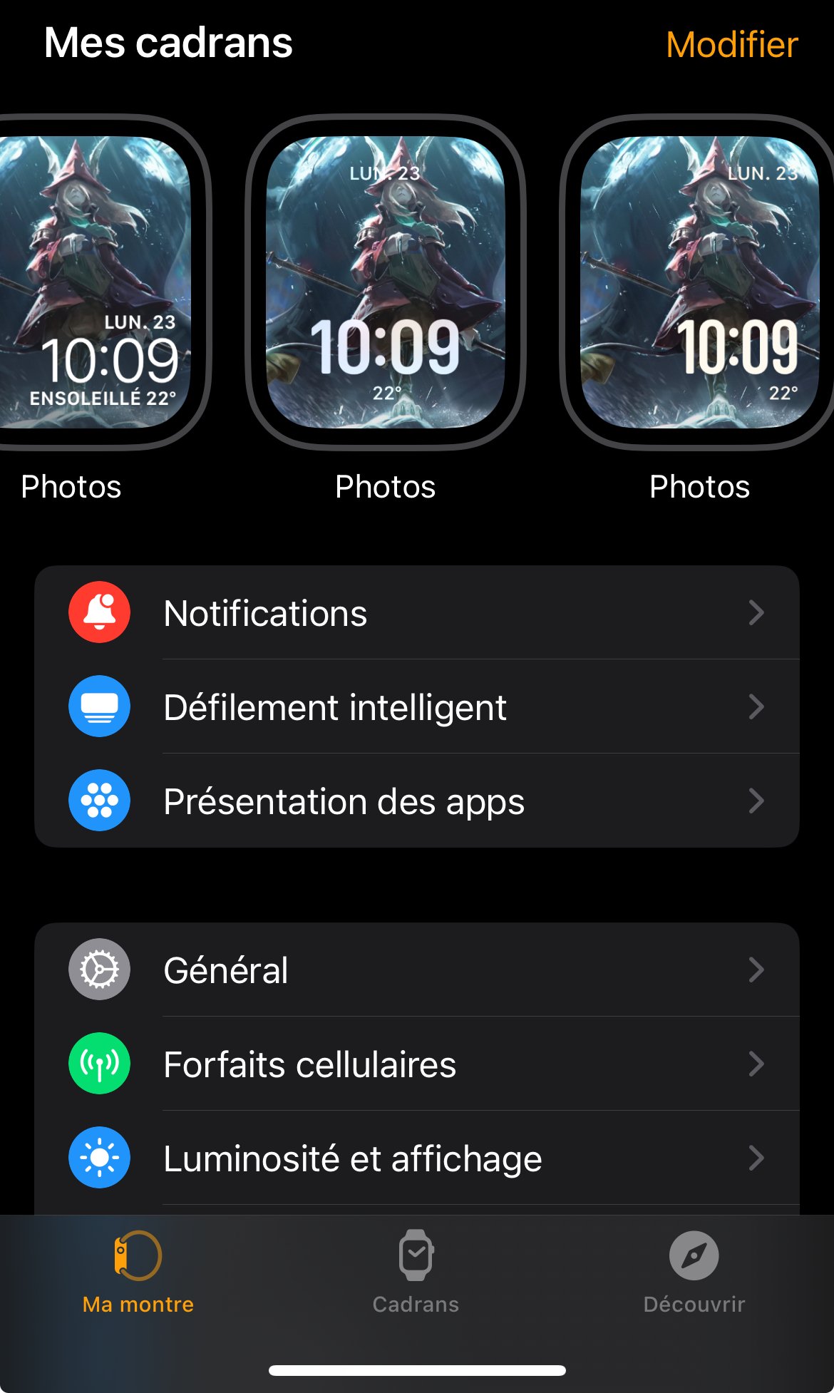J’aimerais reproduire le cadran de gauche, en changeant seulement la photo, mais impossible de le modifier, ca me demande de le mettre a jour et ca m’affiche celui du centre, et quand je recréer un cadran comme celui de droite, je n’ai pas la meme police, ni la meme disposition…
