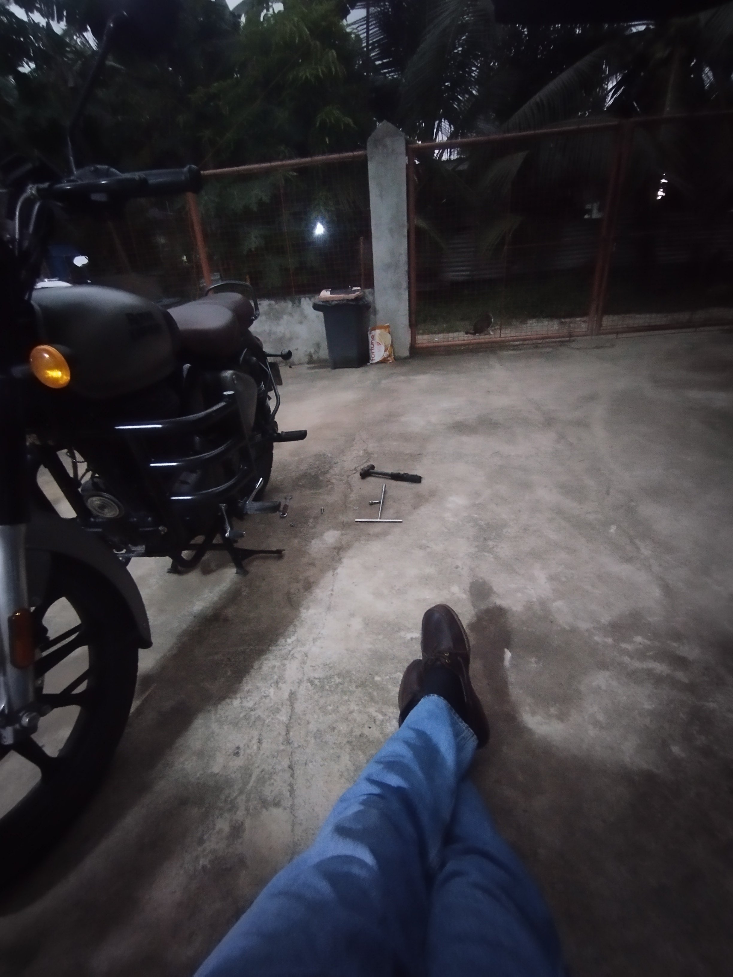 Je suis dans le jardin d'un Indien qui fait des modifs sur ma moto achetée neuve avec une grosse liasse de cash il y a deux ans et que je conduis depuis sans permis. Ça fait 4 heures que je tourne en rond, posez-moi vos questions
