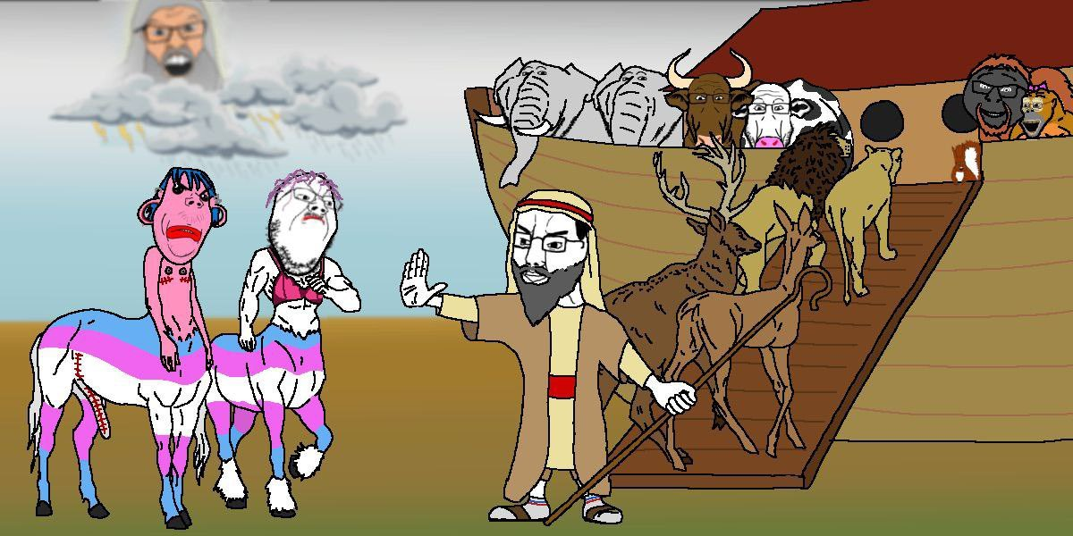 Oh non, Dieu est tellement vilain, bouhouhouTon avis sur le fait que ça soit Noé qui ait sauvé l'éléphant et tous les autres animaux et non l'éléphant qui ait sauvé Noé et tous les autres animaux ?