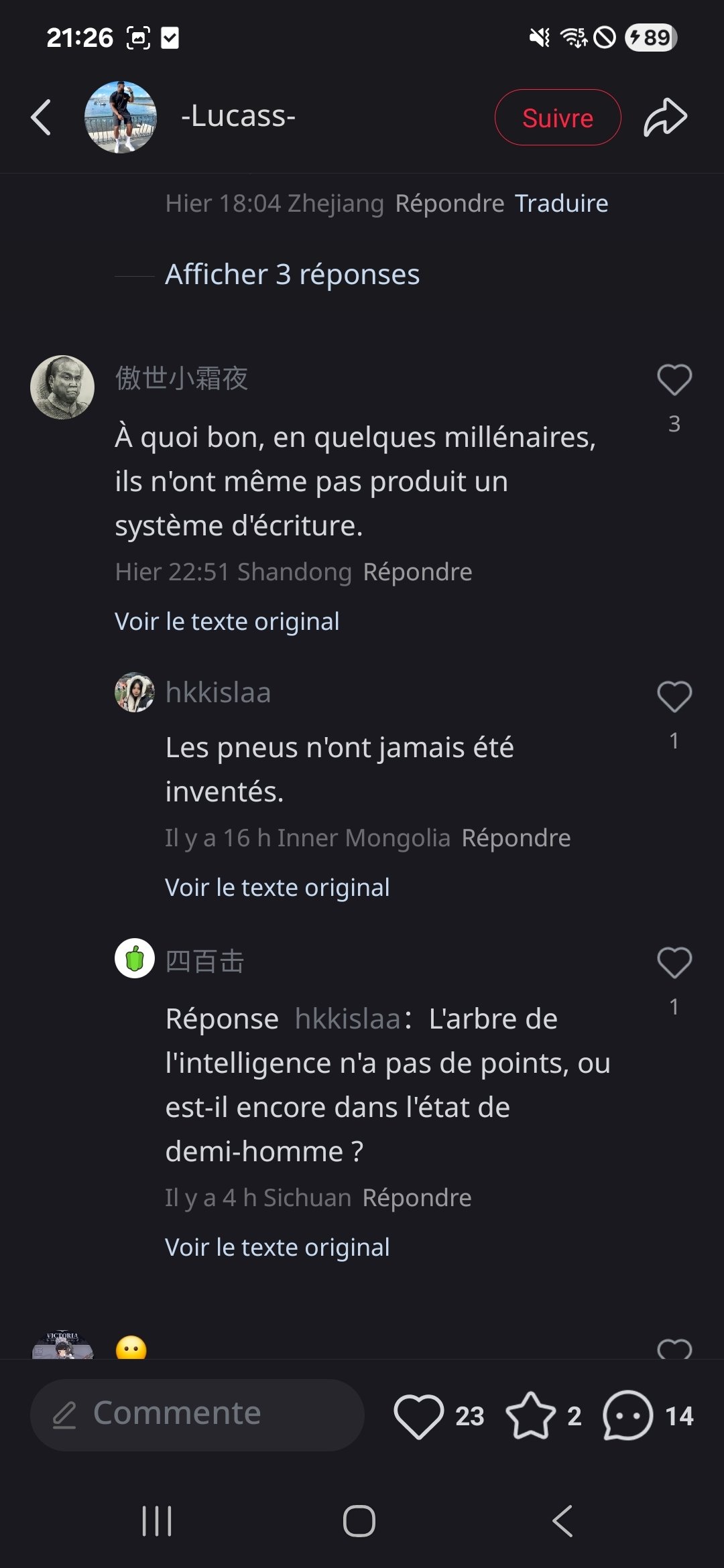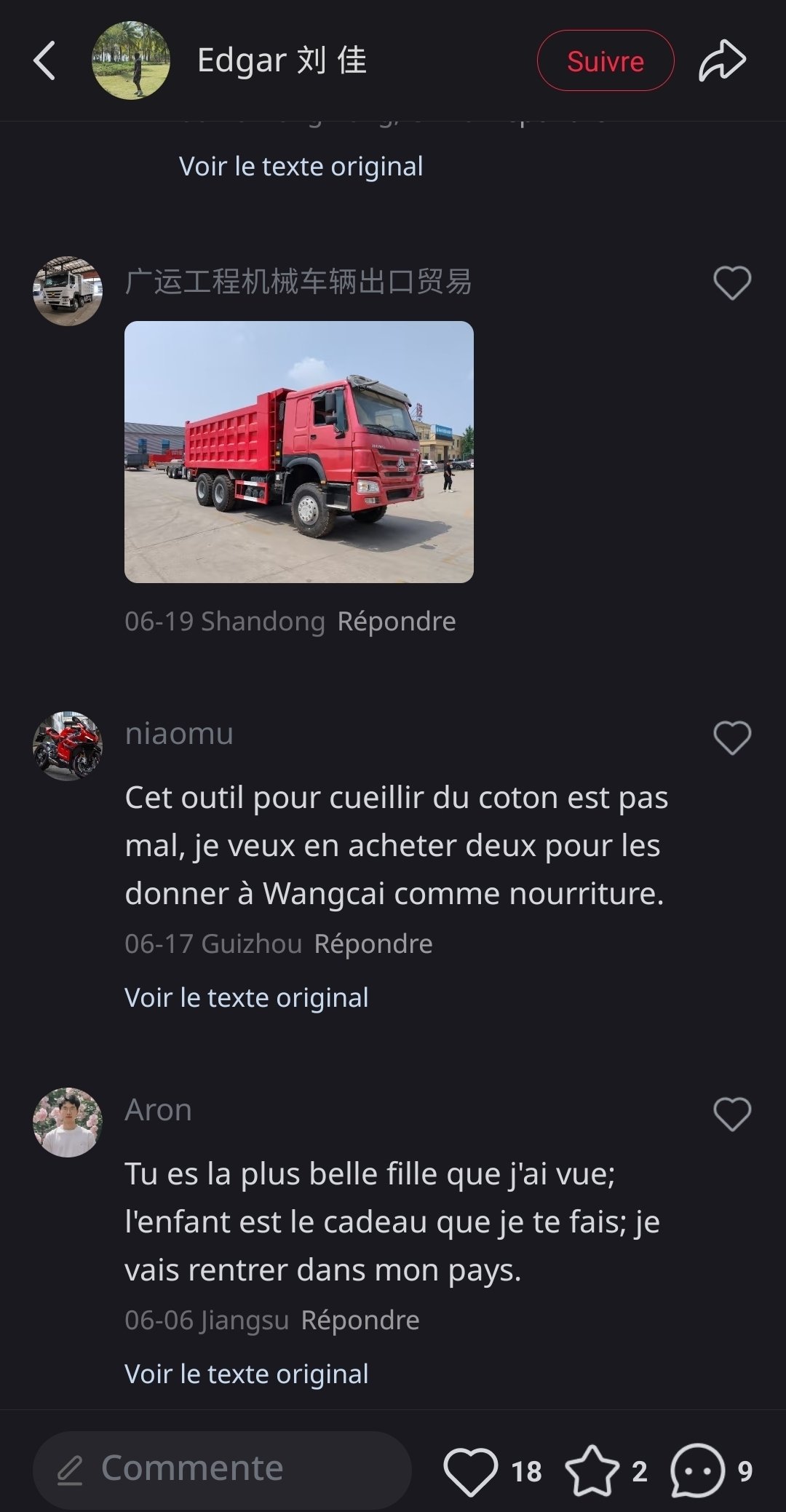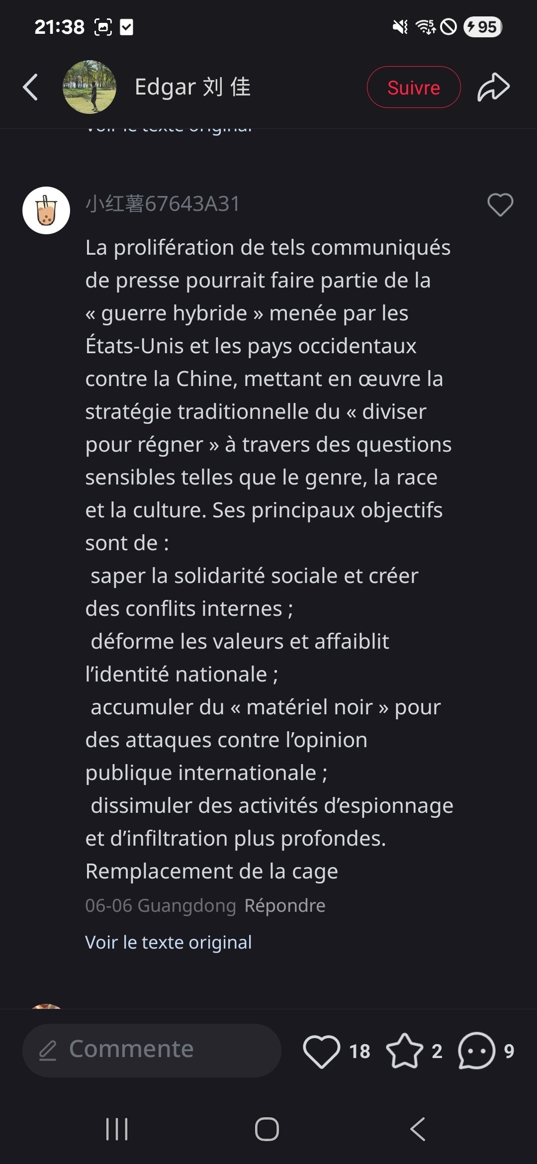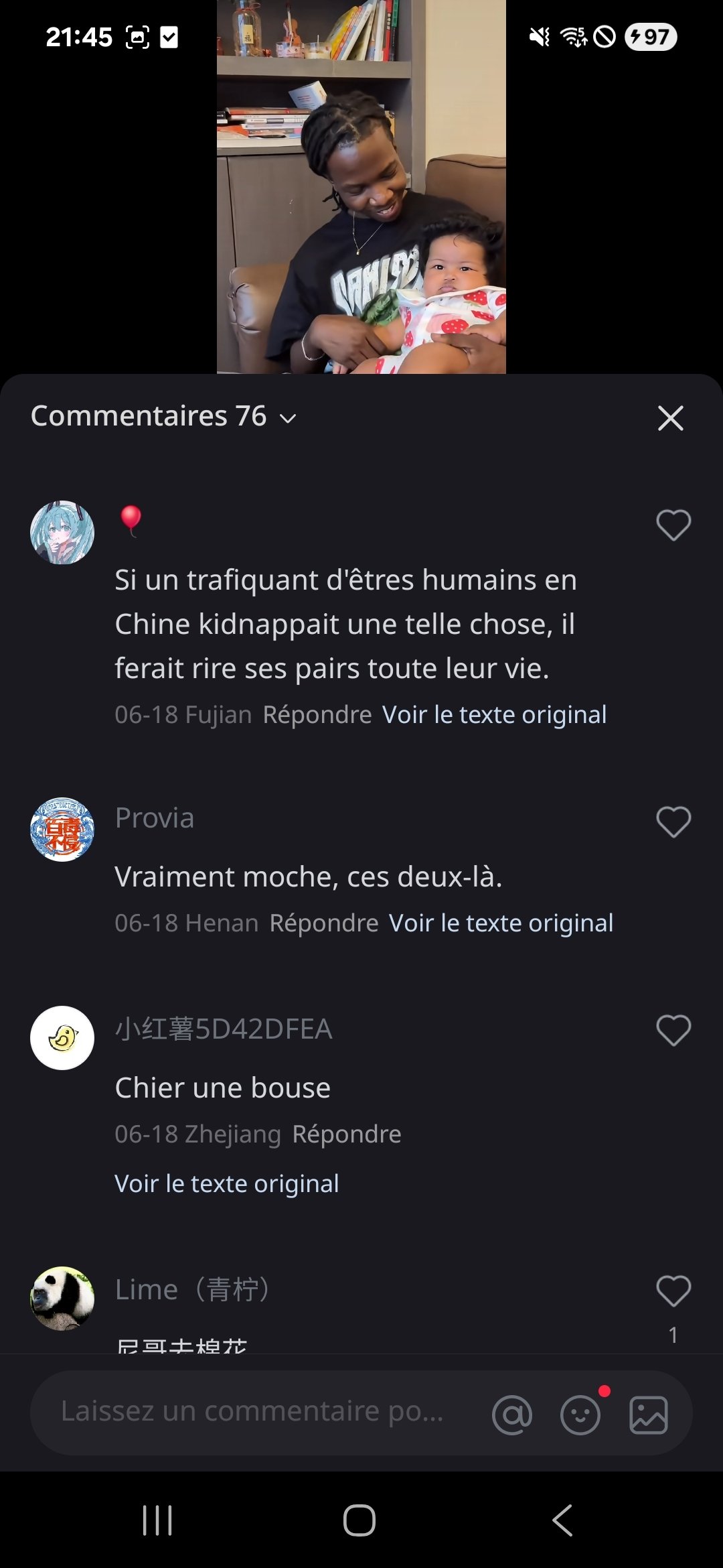 J'ai téléchargé une appli de réseau social chinoise (Xiaohongshu), et parfois je tombe sur des photos/vidéos d'Africains en Chine, et dans les commentaires, c'est la foire Quelques exemples :