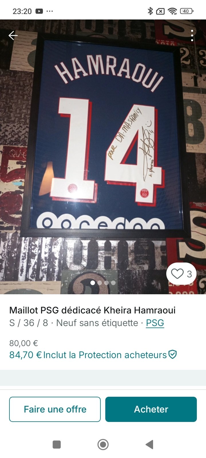 Sur vinted un mec vendait un maillot porté par Kheira Hamraoui quand elle jouait à Lyon.Personne l'a acheté