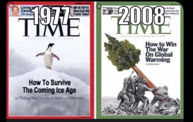 Pour commencer avant les années 80 nous nous dirigions vers une ère glacière, puis soudainement nous sommes rentré dans un réchauffement globale, la preuve en image: