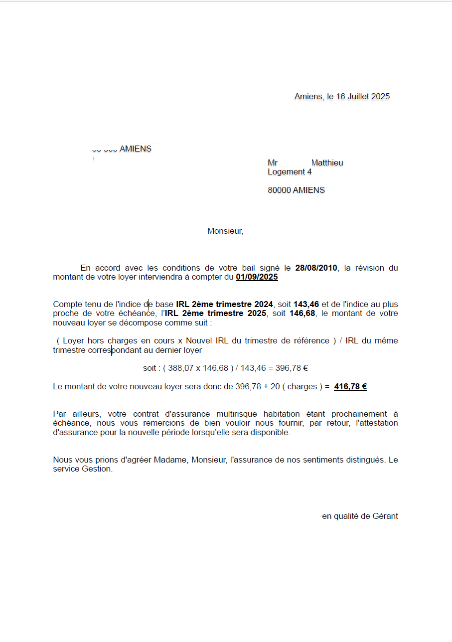 Par contre, si le précédent oubliait d'indexer, il ne peut pas rattraper plusieurs années de hausse d'un coup, ça se prescrit en un anTiens, j'ai masqué les informations persos