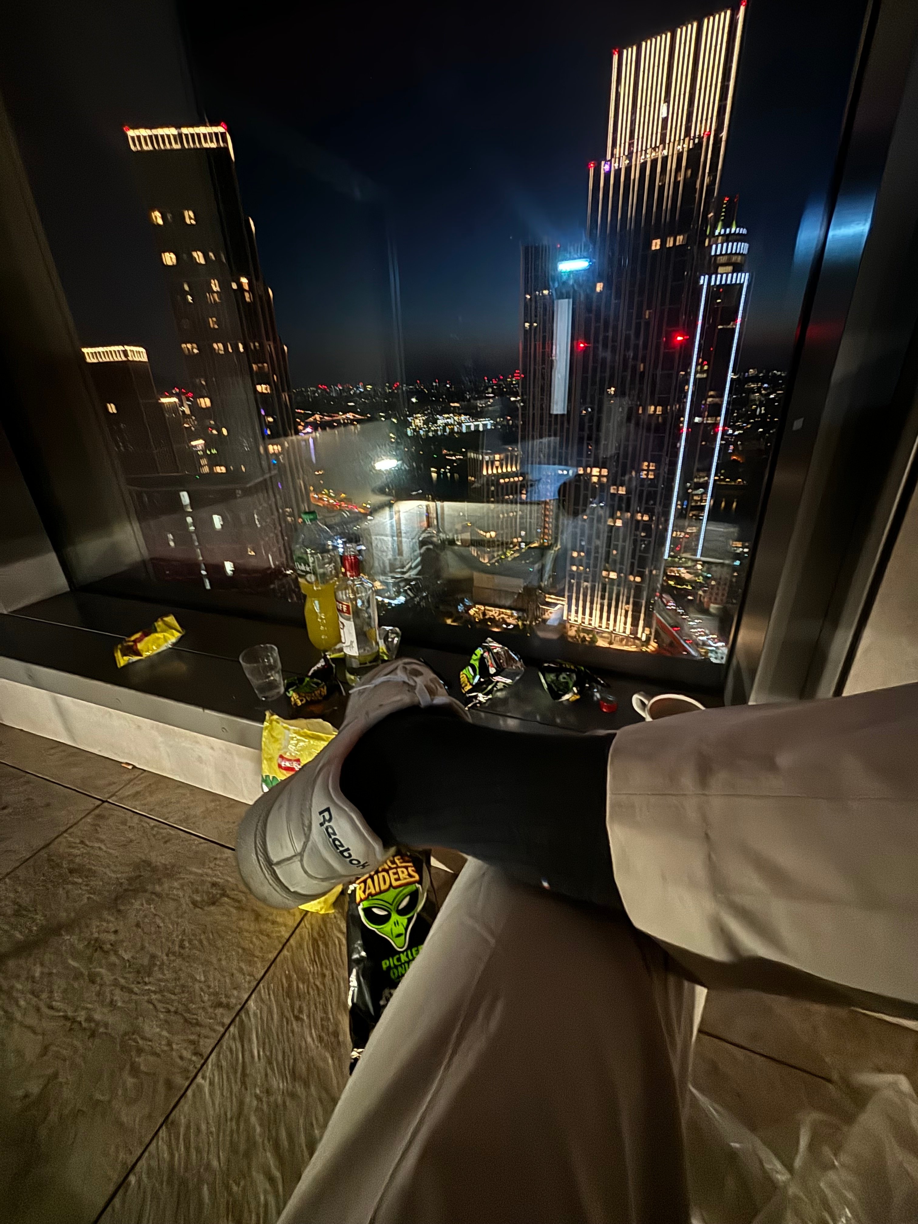 Tu t'alcoolises seul ?Non mon pote est parti chercher les pizzas on va en boîte après