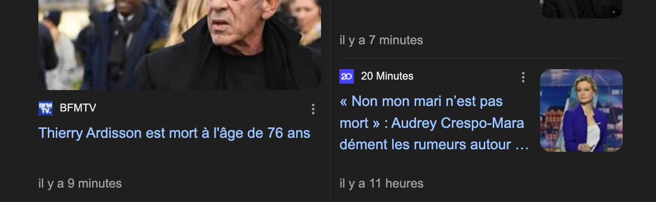 C'est un peu ce qu'il s'est passé avec Pascal Sevran il y a quelques années, il est annoncé décédé en direct dans une émission de Ruquier puis un peu plus tard dans l'émission démenti et coup de gueule de Ruquier contre la fausse info