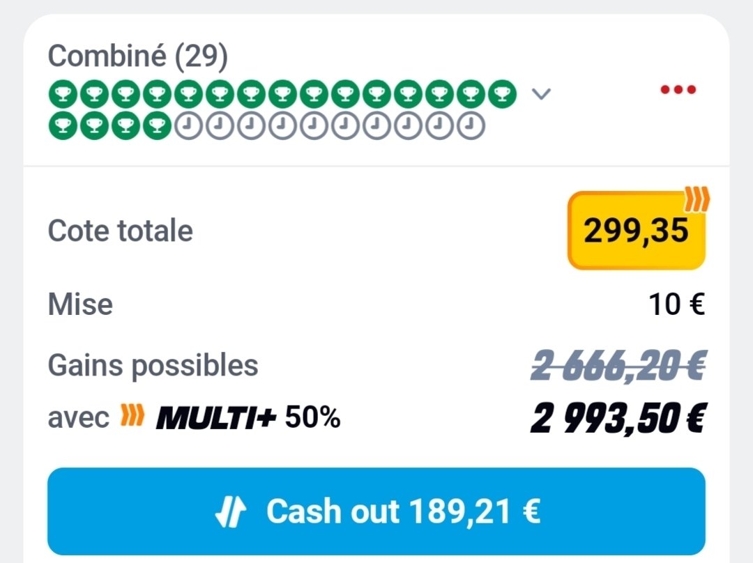 C'est con j'trouve, ce serait intéressant d'avoir des stats sur tes paris pour savoir si tu gagnes ou si tu perds plus