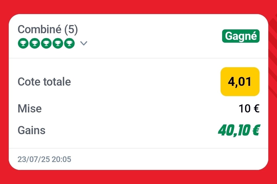 [23:13:14] <70anonyme>Le 23 juillet 2025 à 22:52:05 :Et voilà combi validé : 45e easygg