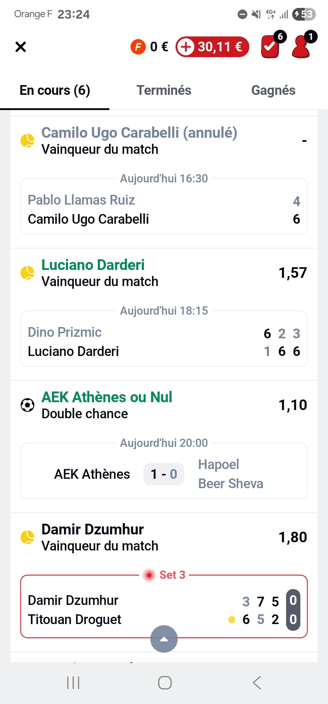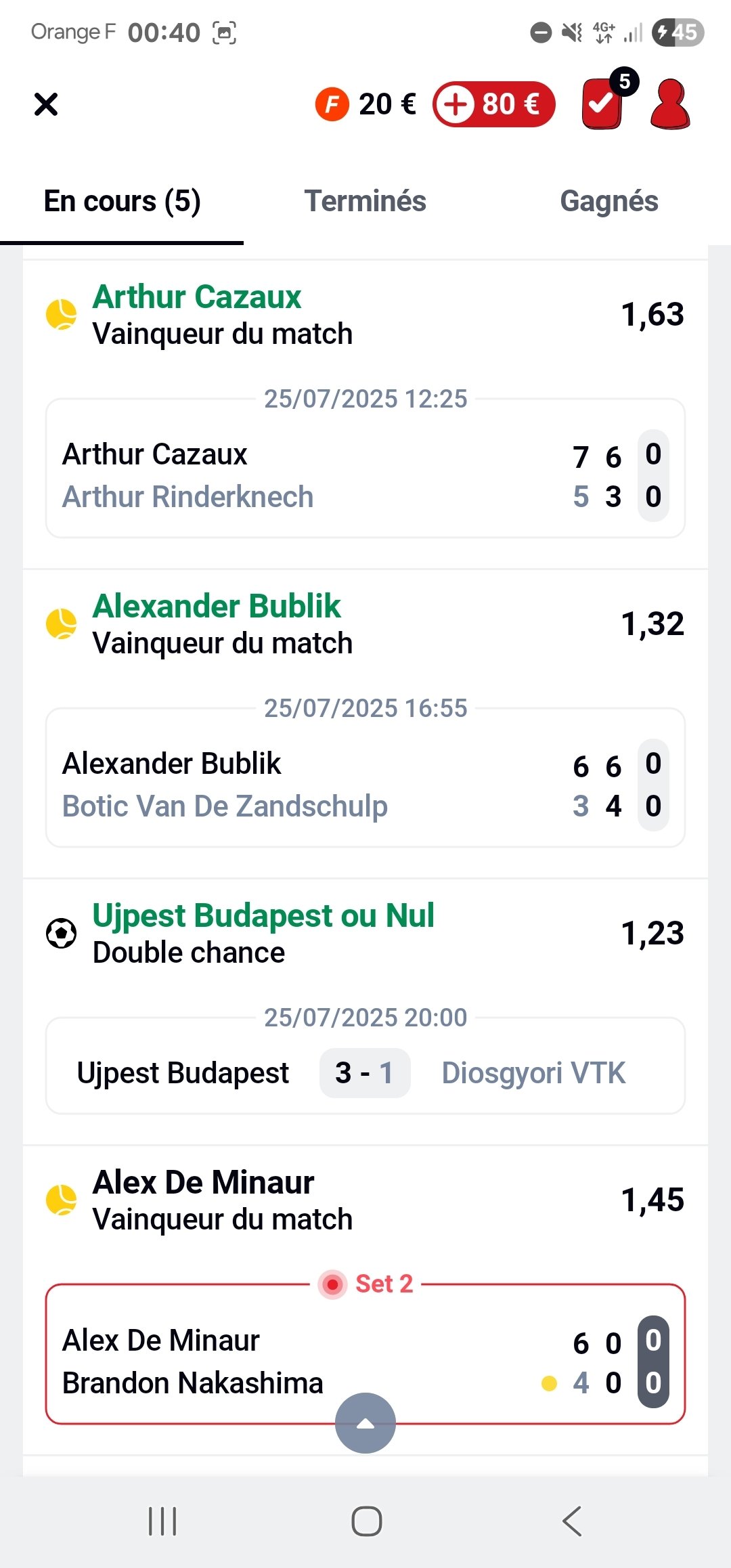 L'un encore bien parti (reste 1 seul match de foot ce soir après les victoires de cobolli et tiafoe notamment) mais je poste pas pour pas porter la poisse