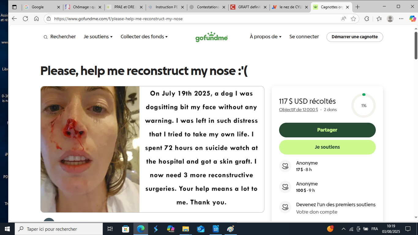 Je sais pas si elle s'est rendue compte qu'en publiant une cagnotte elle risque d'être condamné par la justice si elle a mytho
