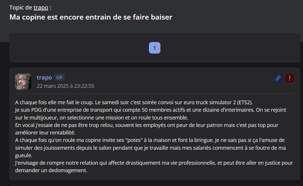 Ok "trapo"On y crois t es même pas capable d assumer ton identité sexuelle au quotidien et tu t invente une vie sur internet mais tu vas nous donner des leçons