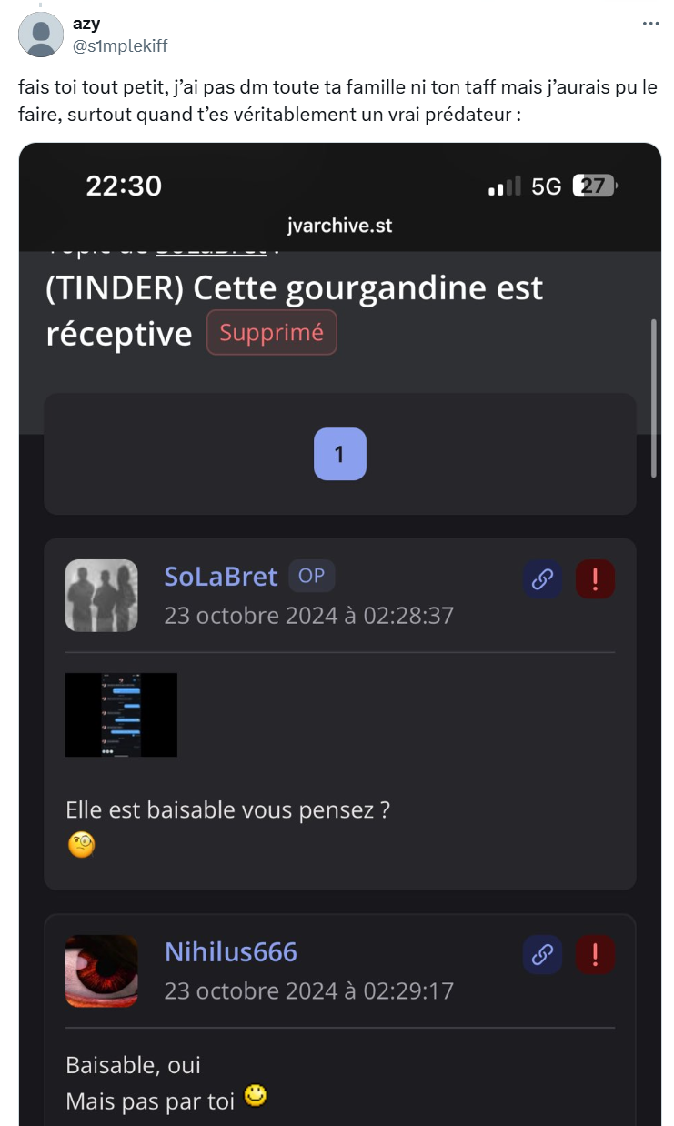 > NON l'op ça suffit t'as fait l'AW t'es content t'as posté un truc pas défendable et maintenant elle à d'autres screen contre toi