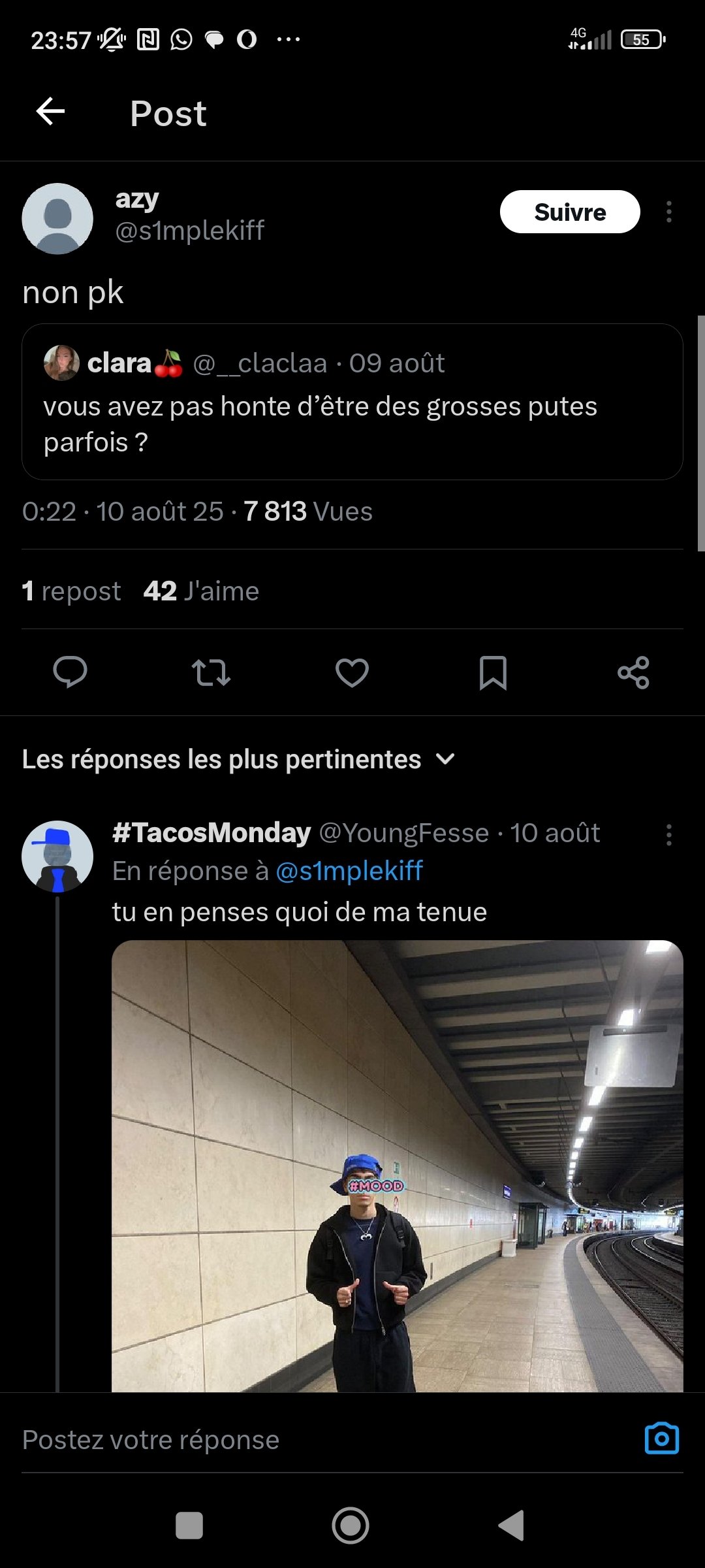 Merci mec, j'ai compris la leçon y'a tout twitter qui me traite de violeur mnt, j'ai une vie sociale homme comme femmes c'est une folie de me faire sa