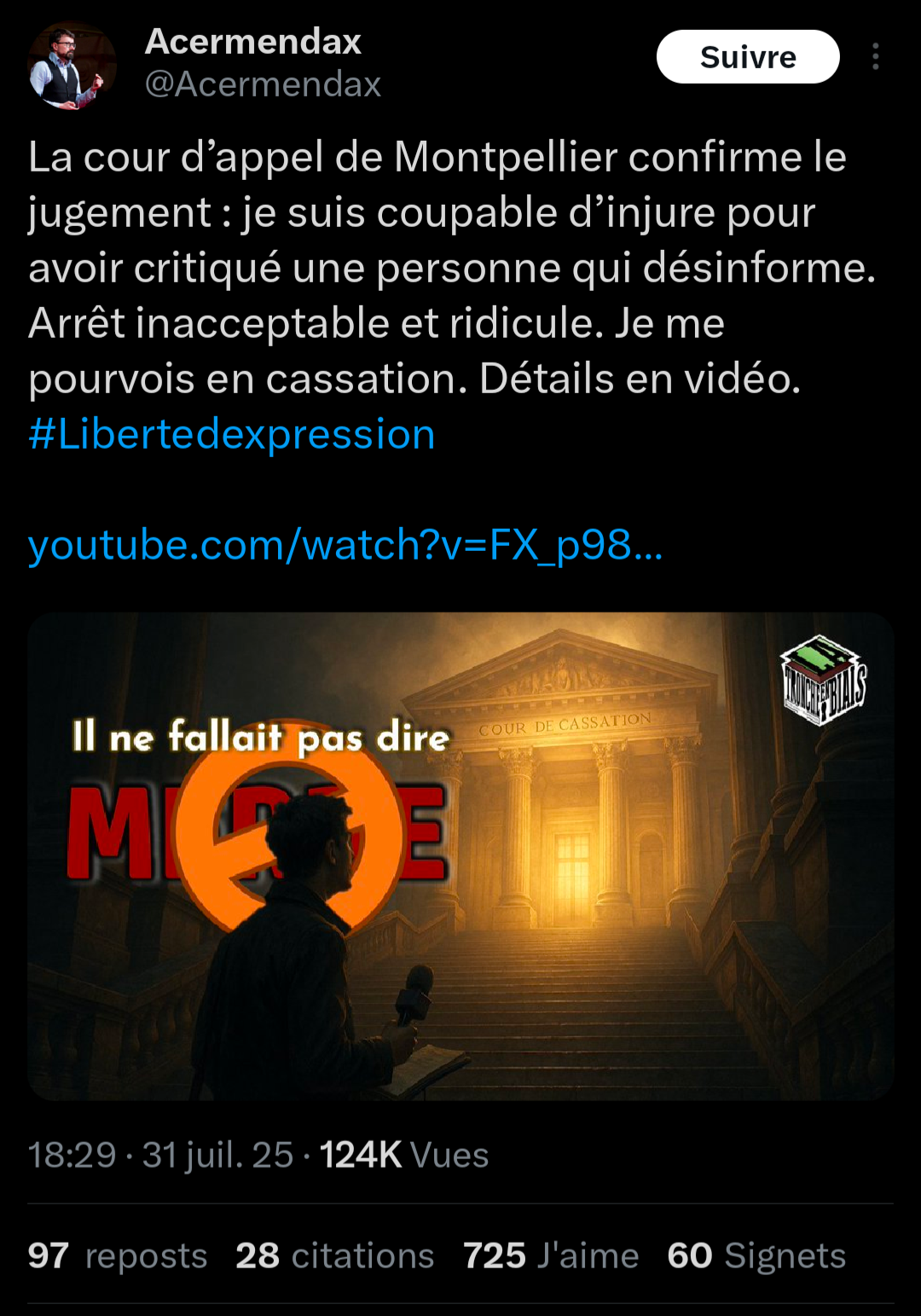 Condamné en appel à payer une amende + suppression des vidéos sur Annie Lobé.