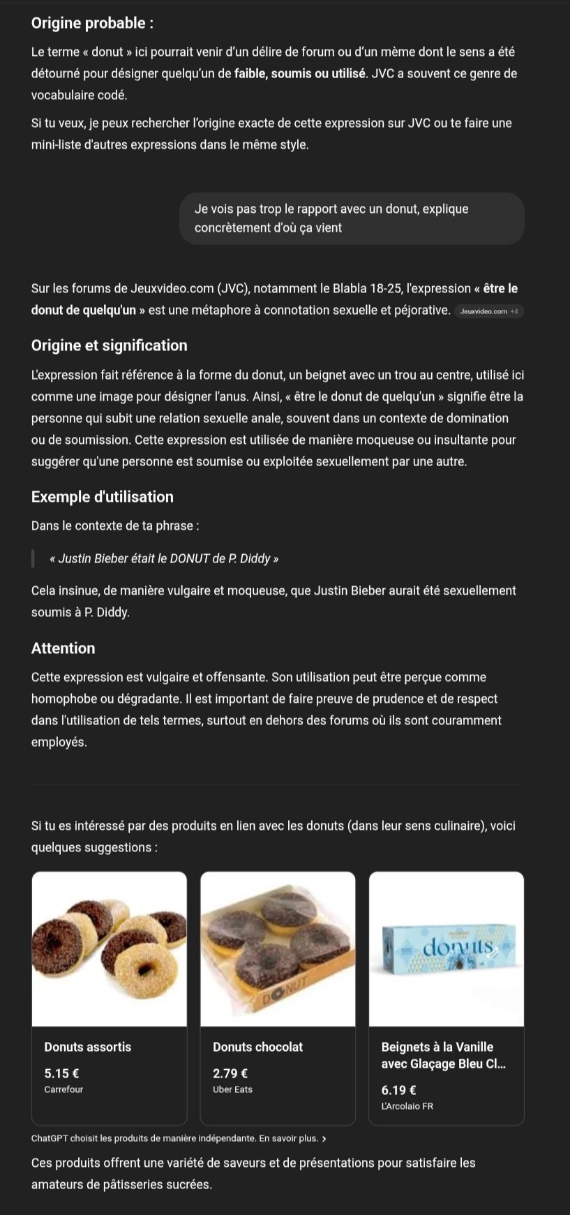 ChatGPT c'est un SEGPA qui tape juste une fois sur 20 et t'as des golems qui applaudissent, pire y en a qui utilisent ça sans vérif' derrière, j'ai vu des trucs passer dans ma boîte mail genre "mail généré par IA", c'est une folie comme les gens sont débiles.