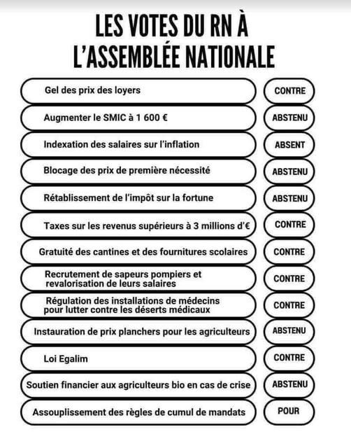 Voici un exemple du positionnement du RN sur certaines lois