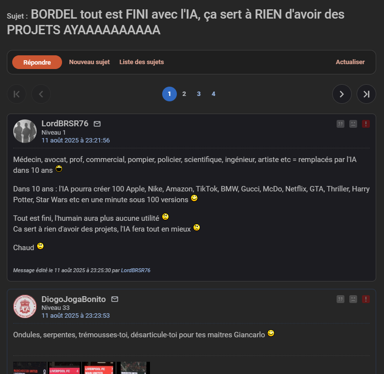 Mais en défilant les commentaires, je constate que plusieurs personnes se mettent à parler en répondant à côté de la plaque :