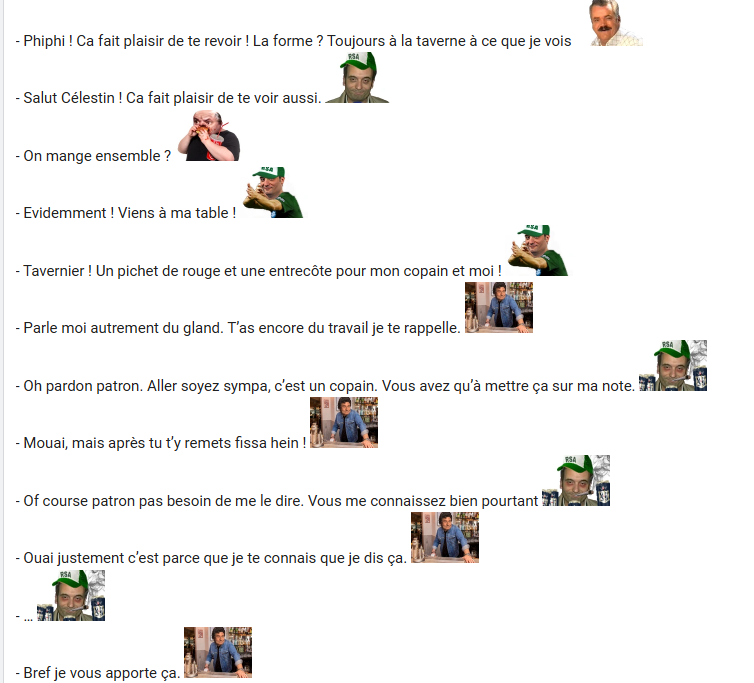 - Phiphi ! Ca fait plaisir de te revoir ! La forme ? Toujours à la taverne à ce que je vois