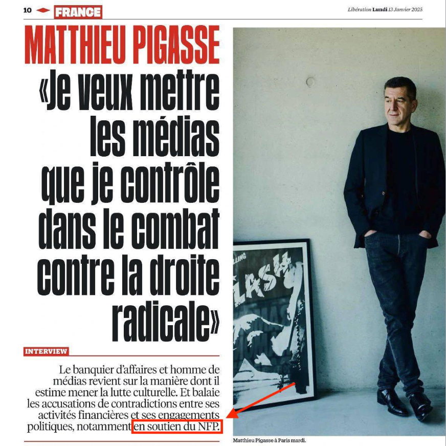 Mathieu pigasse produit la moitié des emissions d'actu de france TV ( C dans l’Air , Ce ce soir , C a vous , le truc du diùmanche soir avec lea sallamé , etc ... ) via sa boite Mediawan qui'il possède avec son ami Xavier Niel