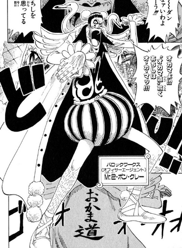 En même temps réduire One Piece à l'animé. Tous ces personnages ont bien plus de charisme et de style dans le manga. L'anime les rend ridicules en leur attribuant des palettes de culottes bariolées et sans nuances, et en caricaturant la forme (déjà quelque peu grotesque) de leur corps![]()