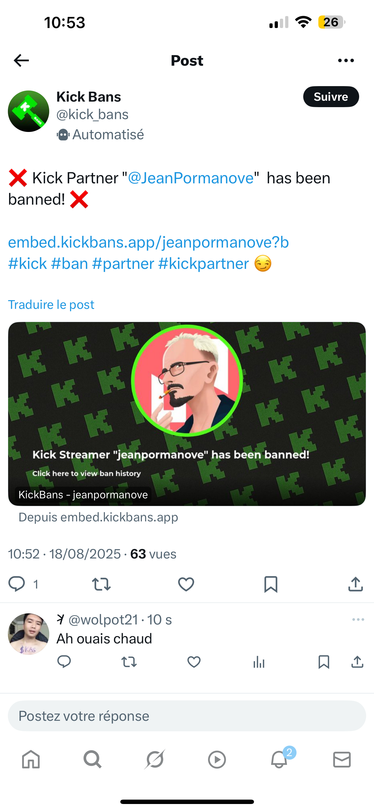 J'ai jamais compris pourquoi les live de ce genre étaient pas bannis par les plateformes.Kick se veut dissident pour attirer les tarax sur leur site, du coup ils ban rien tant que c'est pas illégal ou par prévention.