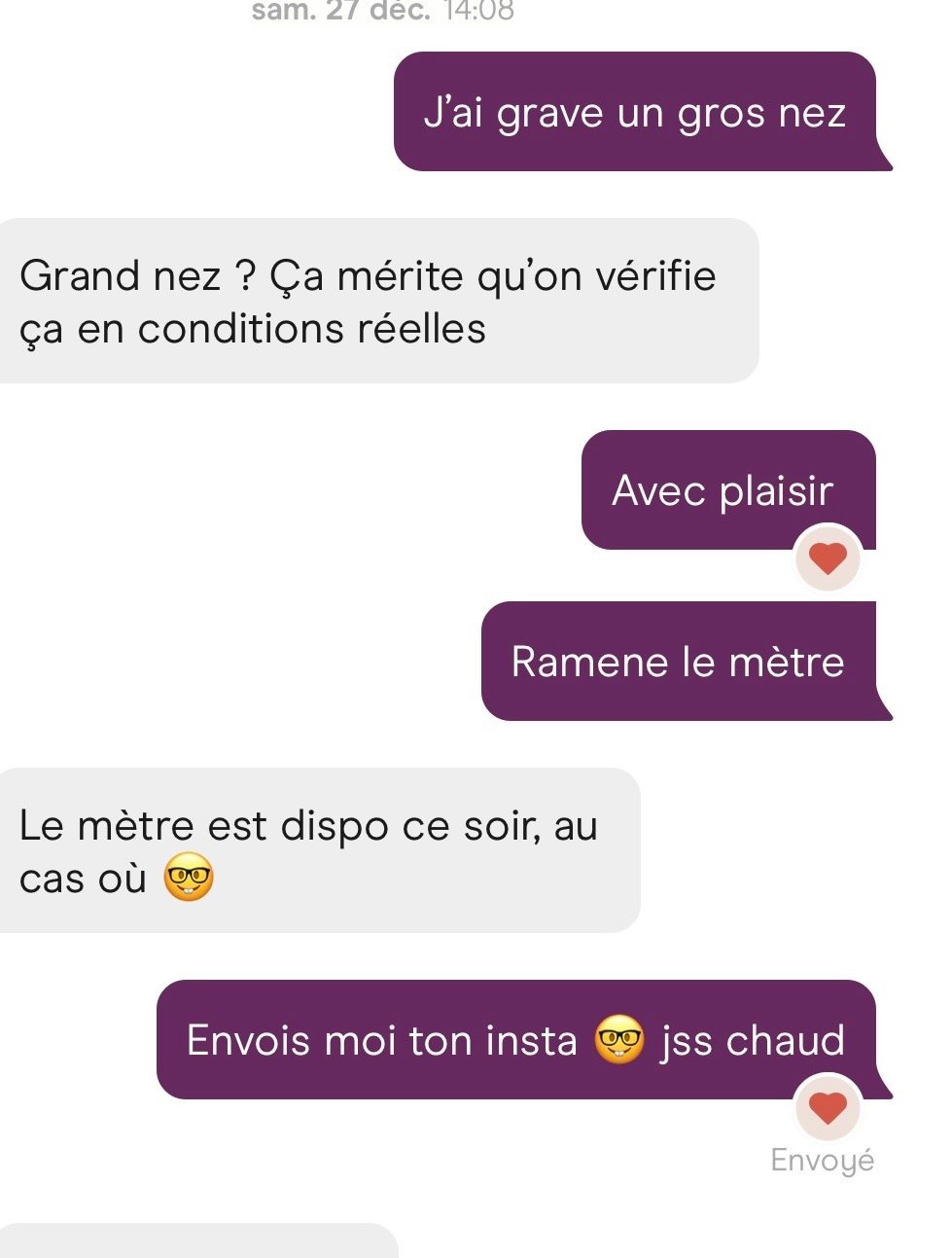 Si c'est la vérité tant mieux pour toi mais faut que tu prennes du recul, une meuf qui fais le 1er message, même sur Hinge c'est rare donc forcément que la discussion ensuite est plus facile