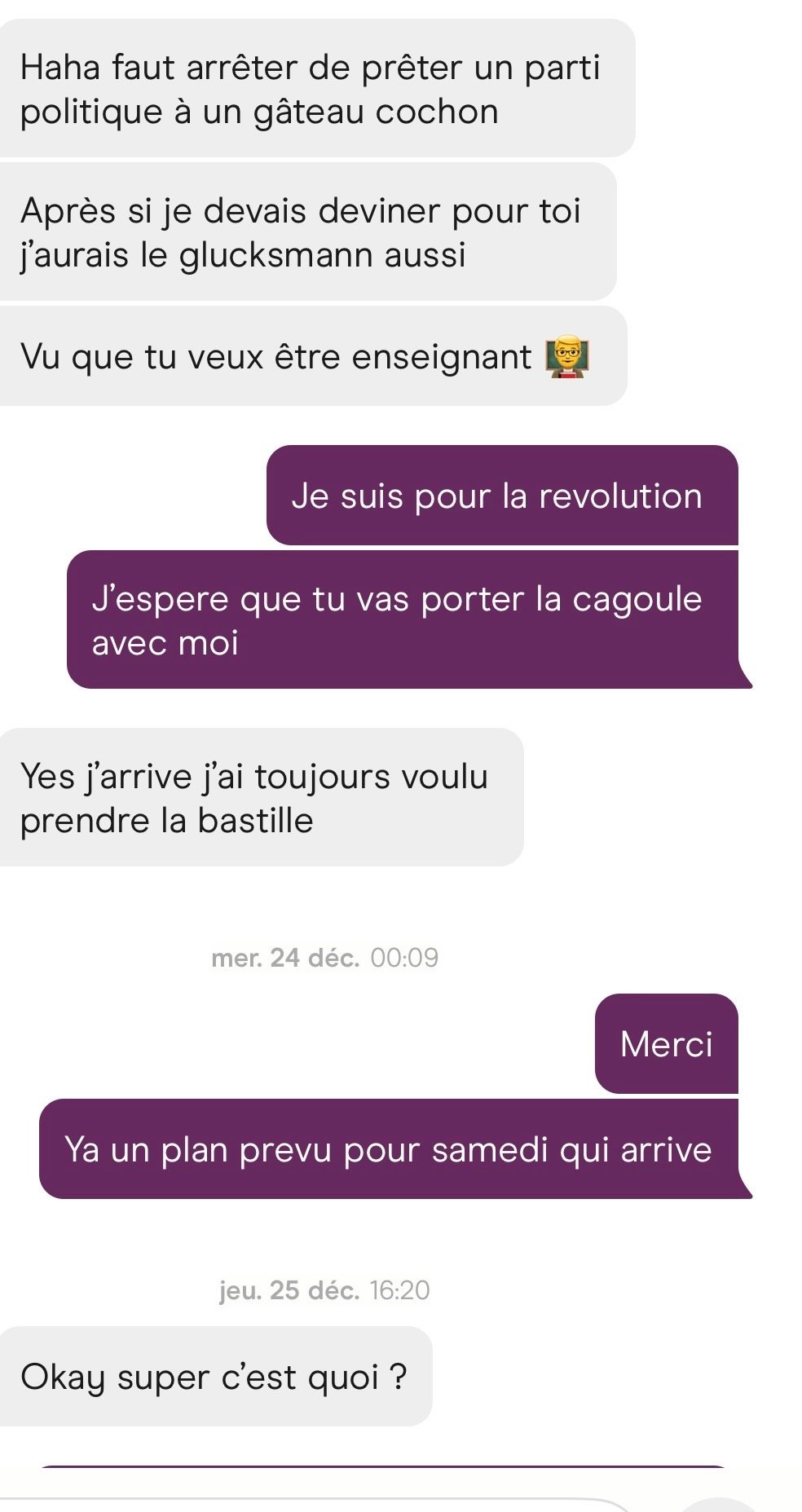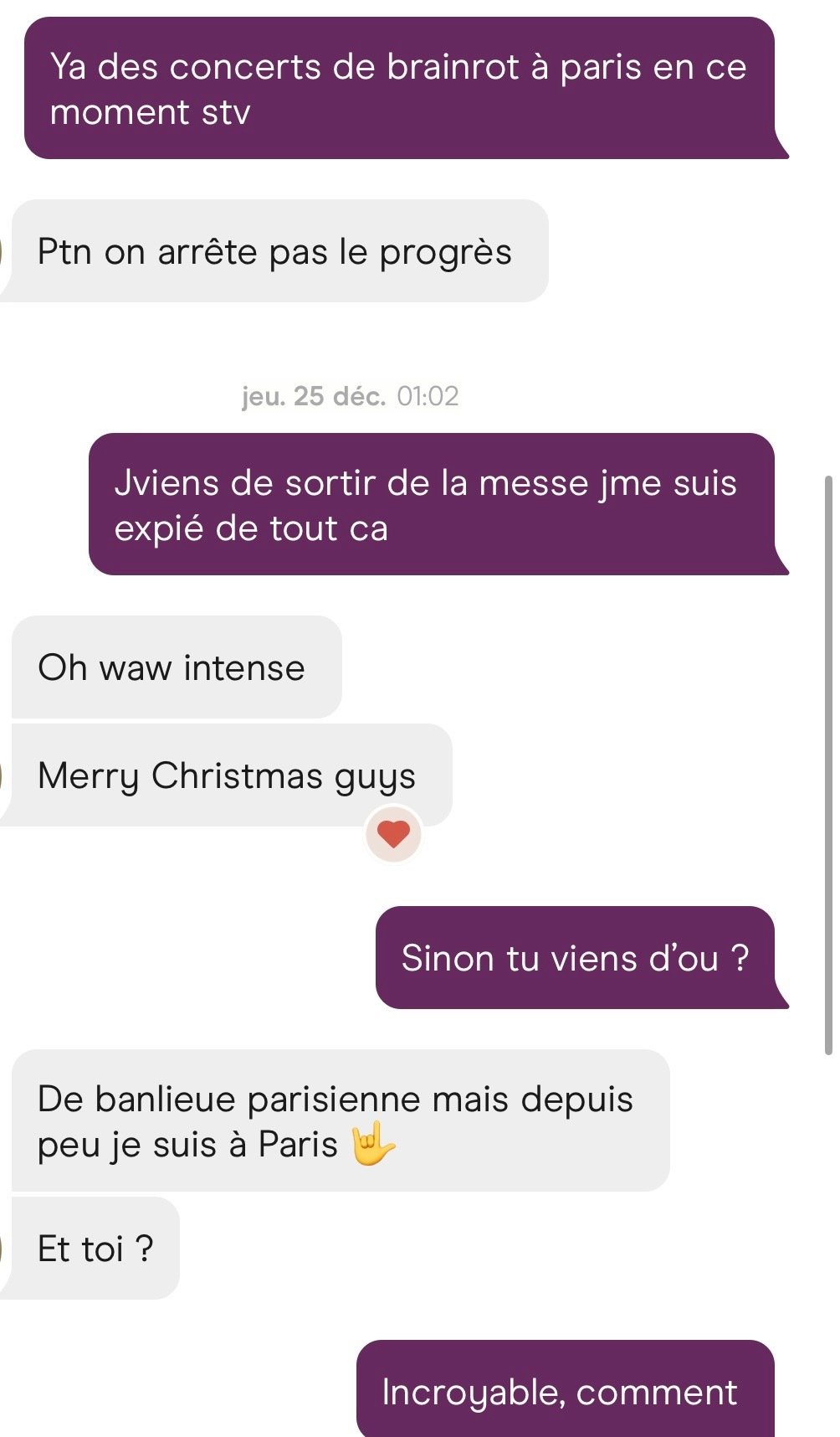 Il faut dire n’importe quoi et ca passe les kheys, plus que les discussions classiques, et les filles à qui je parle sont toutes des bourgeoises parisiennes dans les tops etudes