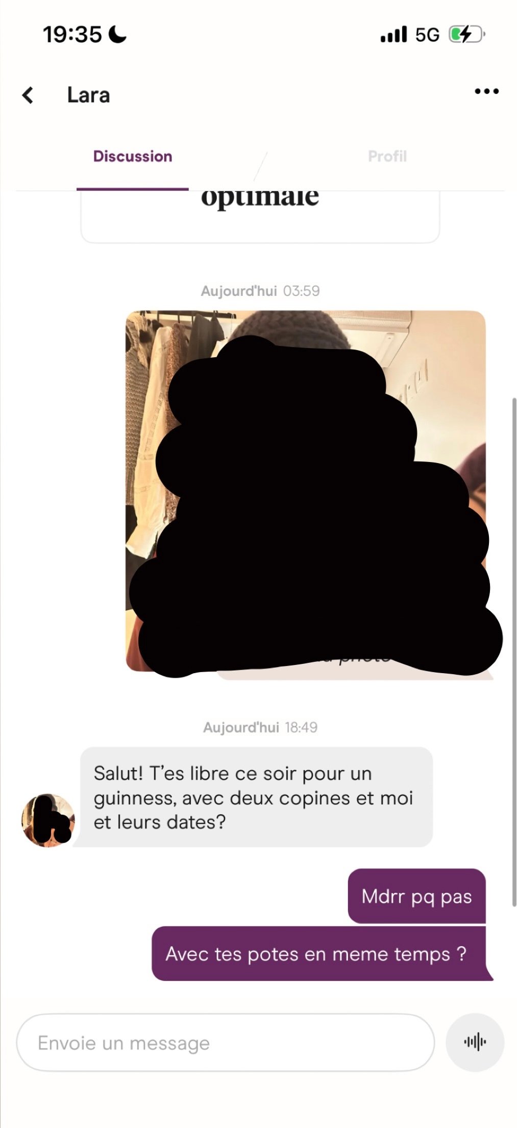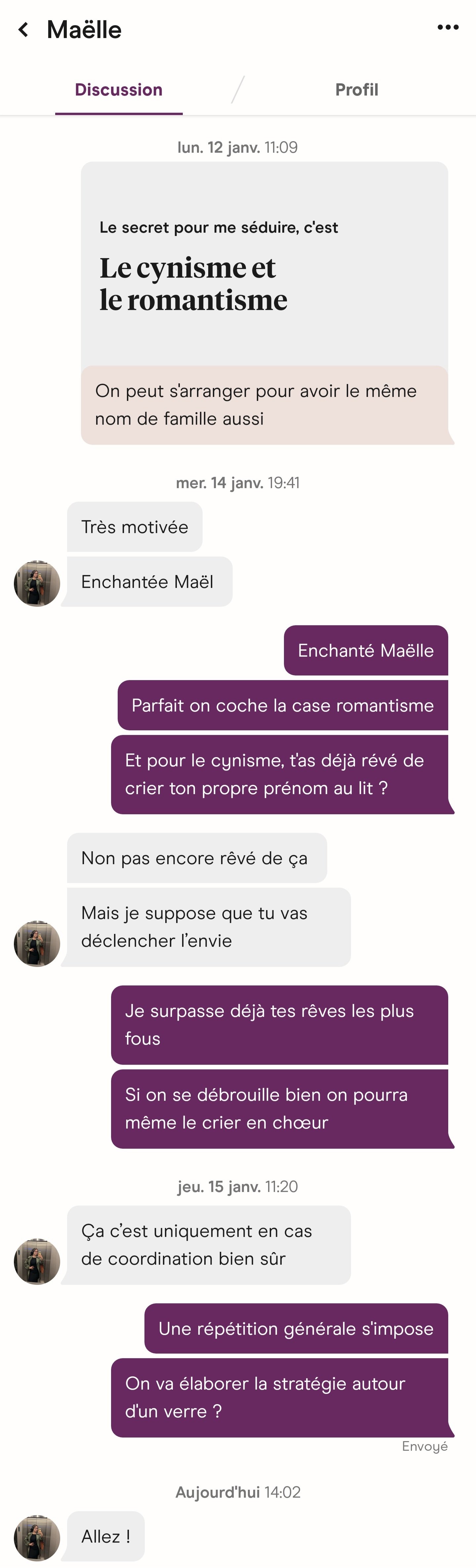 Le 20 janvier 2026 à 21:53:26 : j'ai eu un "match" mais très bizarre l'appli me propose d'envoyer un message pour une meuf que j'ai liké y'a 15 jours, mais y'a pas écrit qu'elle m'a liké en retour ? hinge a til compris que j'étais finito et tente de me maintenir sur l'appli ?