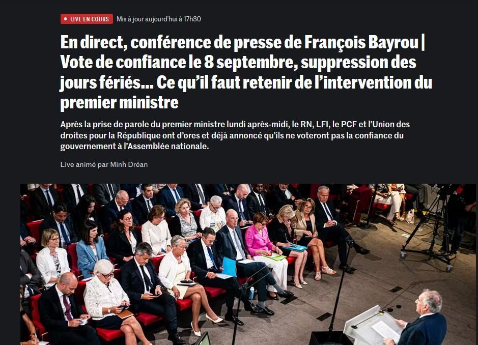 Qu'est-ce qu'il a dit ? Les Nicolas qui travaillent et qui payent aimeraient un résumé.Le 25 août 2025 à 17:26:10 :