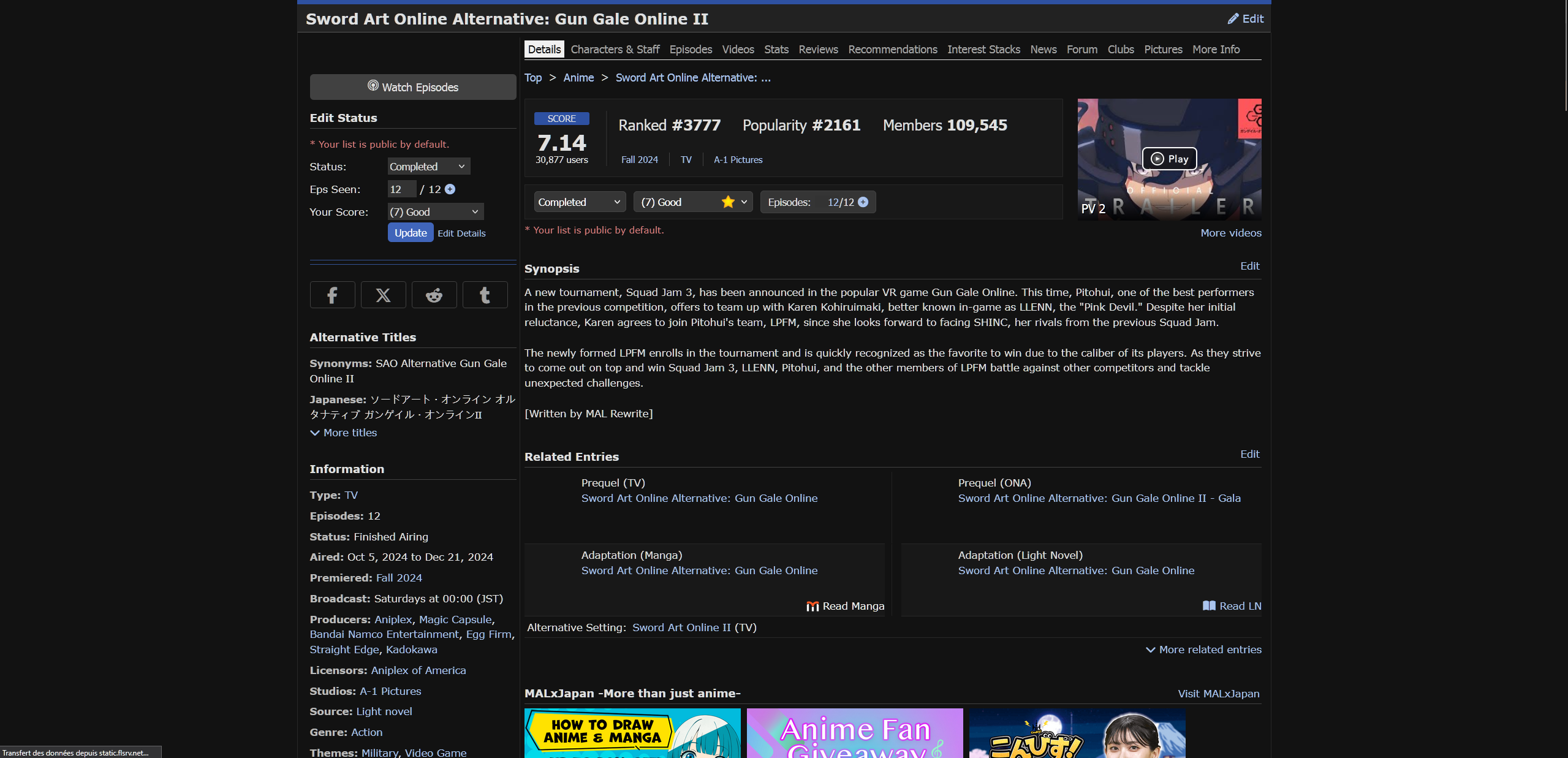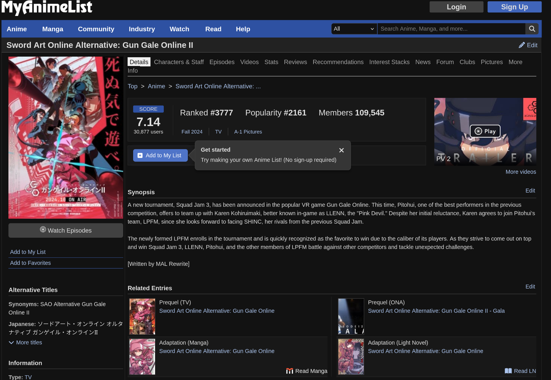 https://myanimelist.net/anime/55994/Sword_Art_Online_Alternative__Gun_Gale_Online_II